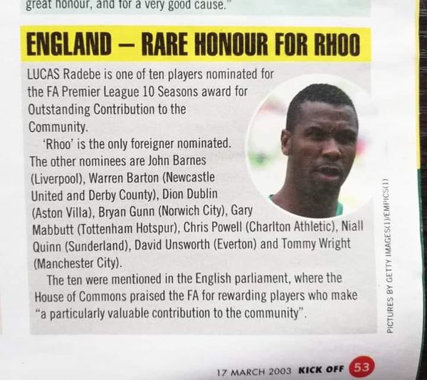 The British band Kaiser Chiefs named themselves after Radebe’s former club, reflecting his influence in both sports and culture.