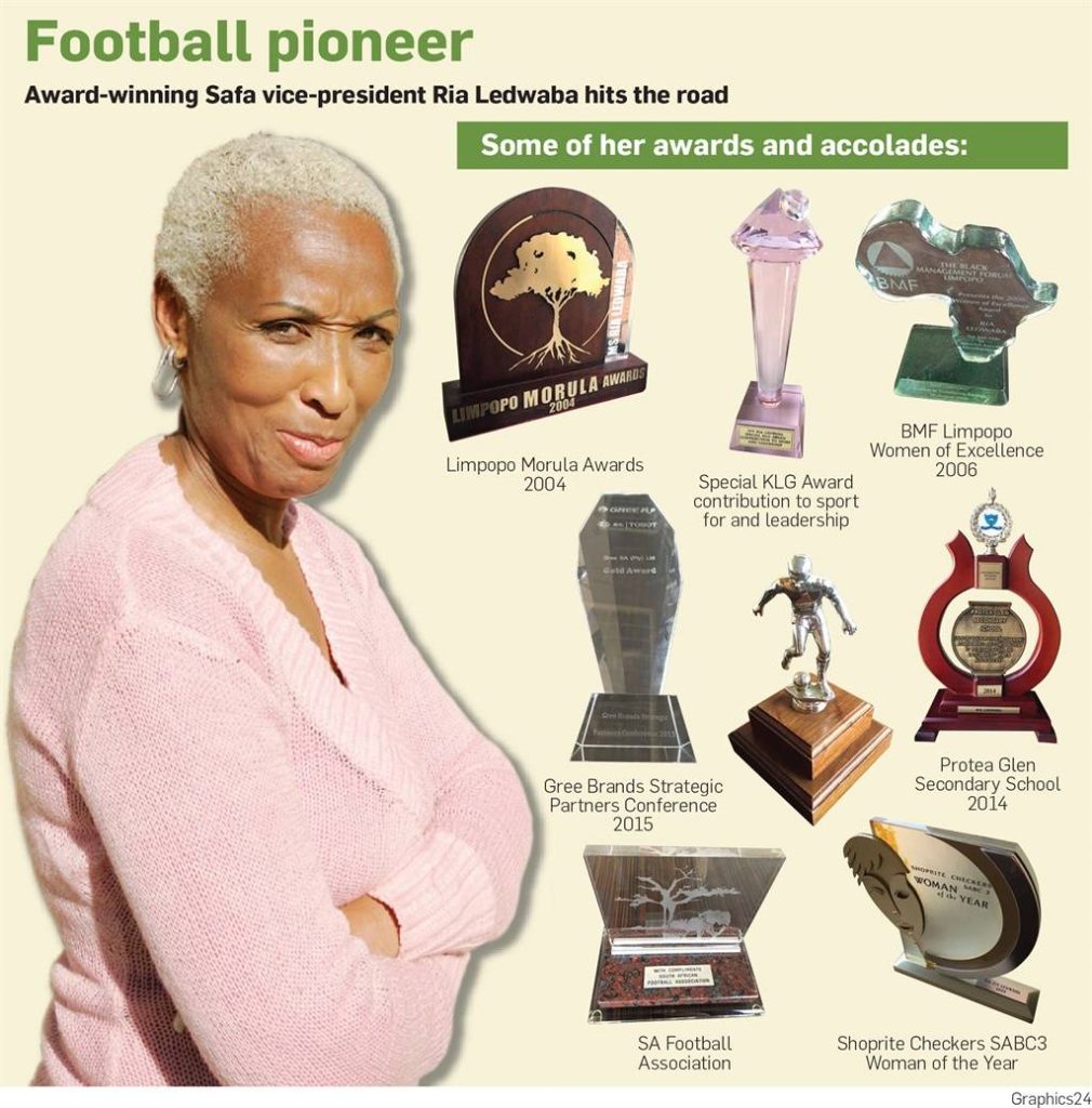 Ria Ledwaba is a true trailblazer in South African football and business. Her barrier-breaking leadership and dedication to women’s empowerment have left a lasting legacy. Her accolades include: